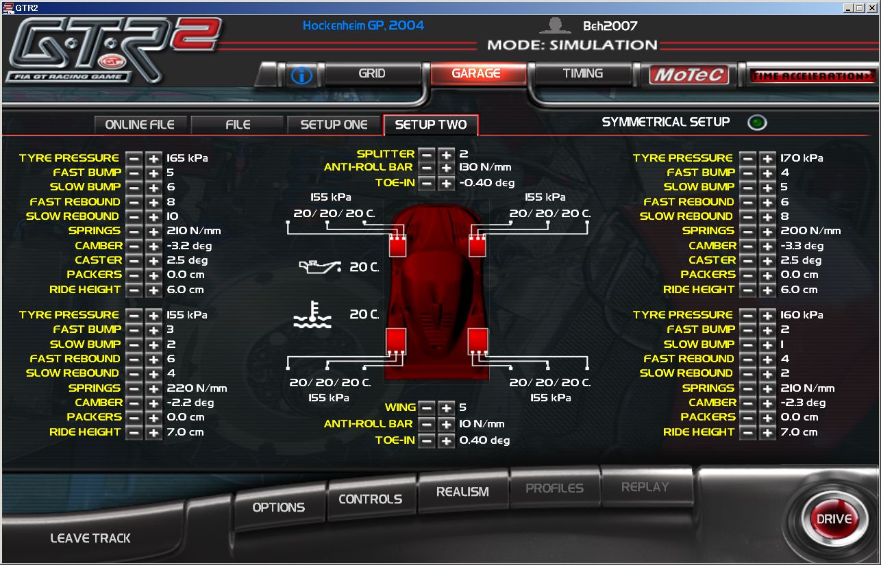 ホッケンは、グリップが高くタイヤにきつく、MoTeCでもはっきりと差が見て取れるので多少こだわった設定になってます。